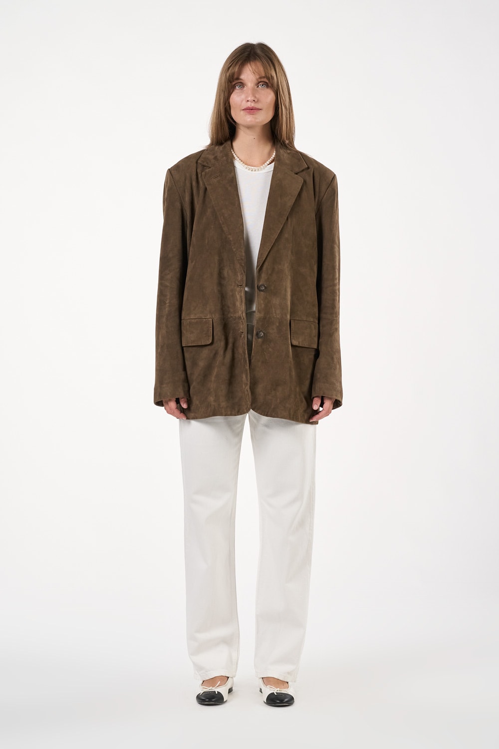 Nellie Coat er et elegant og eksklusivt jakkelag av 100 % geiteskinn, som kombinerer den klassiske blazer-silhuetten med det rå og eksklusive uttrykket til semsket skinn. Den enkle, rette passformen gjør den tidløs og enkel å style – både til hverdags og mer formelle anledninger.