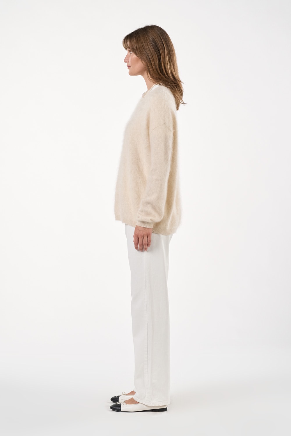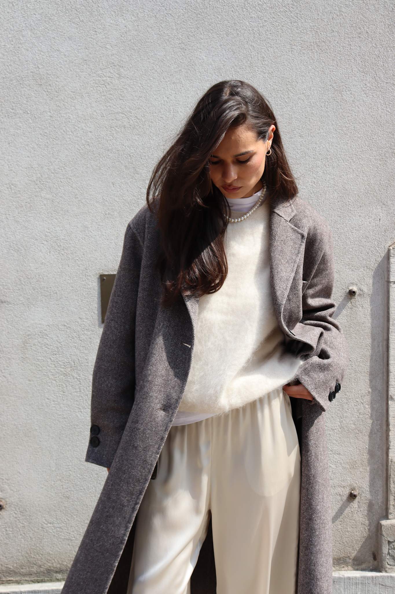 Natalina Blouse er laget av 100 % børstet kasjmir – et usedvanlig mykt og eksklusivt materiale som føles behagelig mot huden. Den førsteklasses kvalitet og det minimalistiske designet gir blusen et rolig og sofistikert uttrykk, noe som gjør den til et tidløst tilskudd i enhver garderobe.
