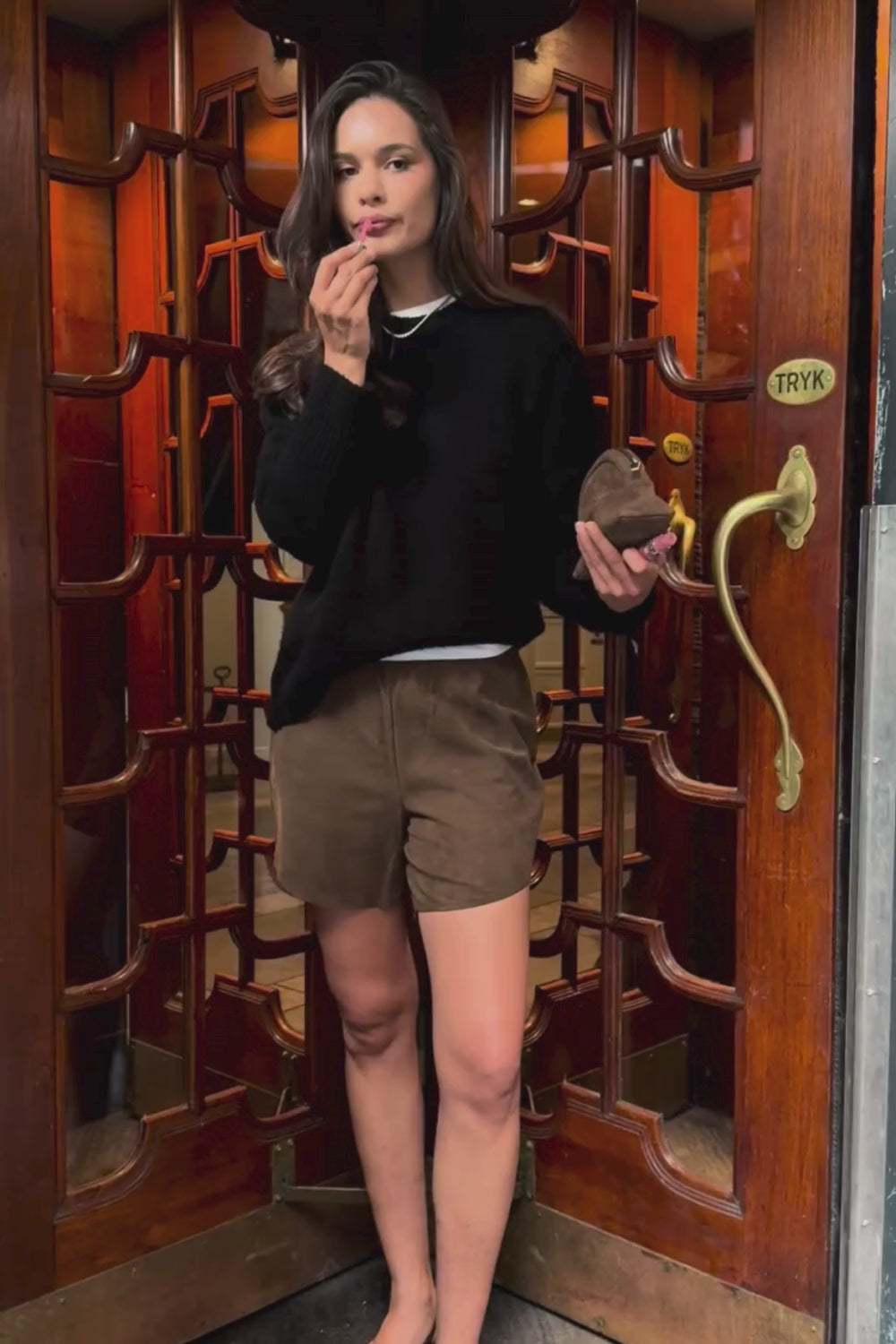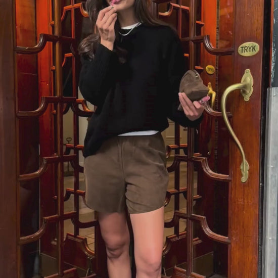 Norma Shorts er laget av 100 % geiteruskinn. Det myke ruskinnet tilfører både struktur og dybde til antrekket ditt, samtidig som det føles behagelig og glatt mot huden. Shortsen har et enkelt og tidløst snitt med elastisk linning, som sikrer en fleksibel og komfortabel passform.
