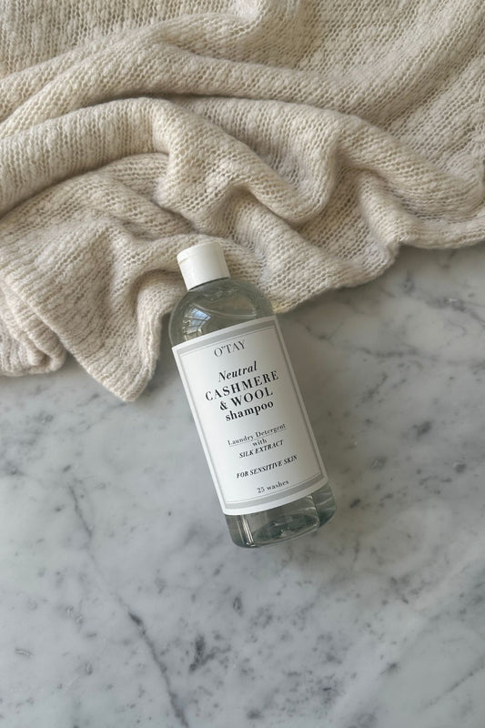 Optimaliser tekstilpleien med O'TAYs eksklusive utvalg av vaskemidler, spesielt utviklet for delikate strikkelagg. Våre vaskemidler er formulert uten enzymer og fargestoffer for å forlenge levetiden til klærne dine. Ta ansvar for tekstilene dine med vår Cashmere & Wool Shampoo, beriket med probiotika. De gunstige bakteriene bekjemper skadelige bakterier på en naturlig måte – uten bruk av sterke kjemikalier. Silkeekstrakt gir en pleiende effekt som etterligner lanolin, og bidrar til å bevare og mykgjøre de sarte plaggene dine.