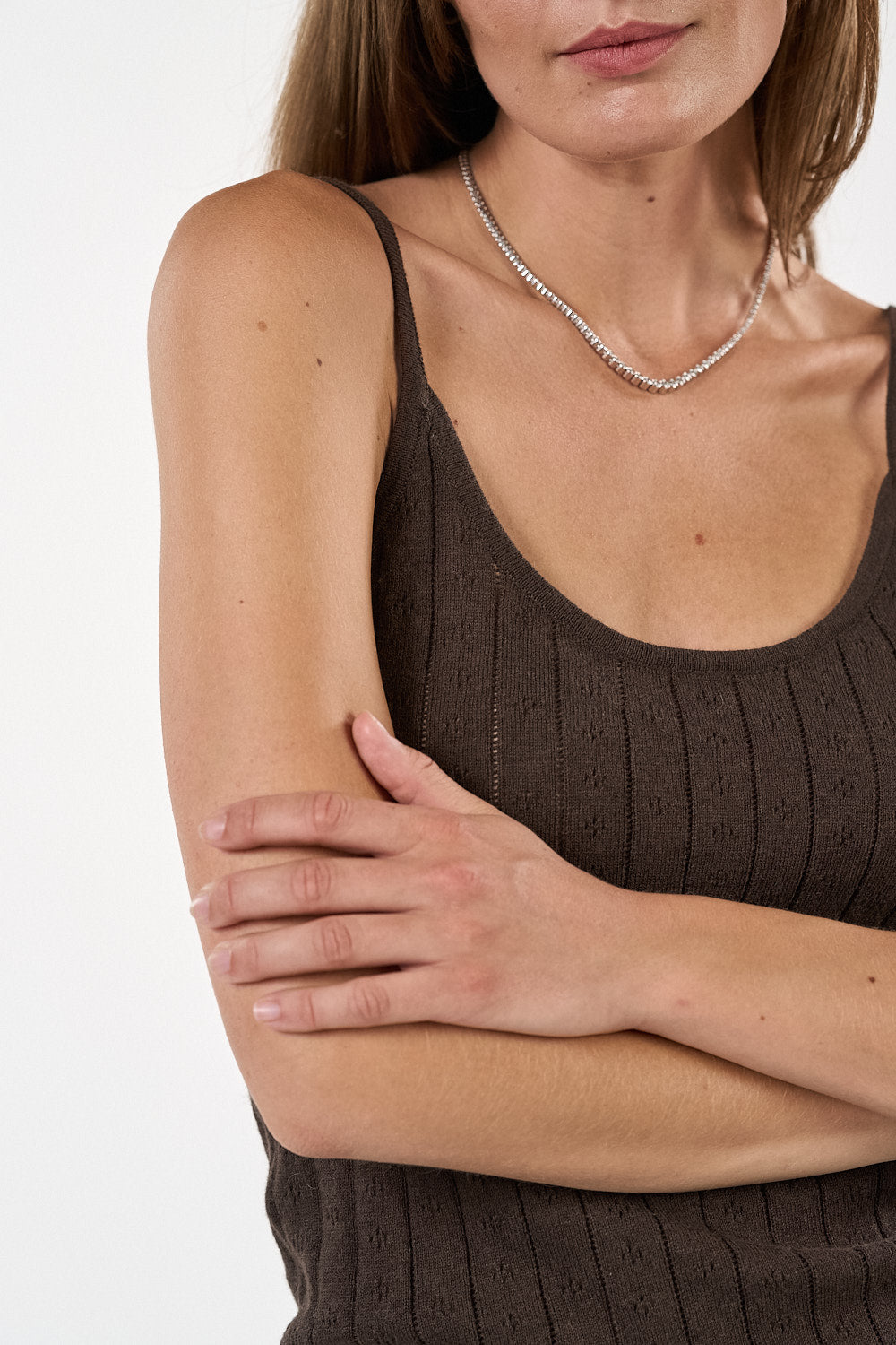 Topp i bomull-/cashmereblanding med tynne stropper og et nydelig pointelle-mønster.