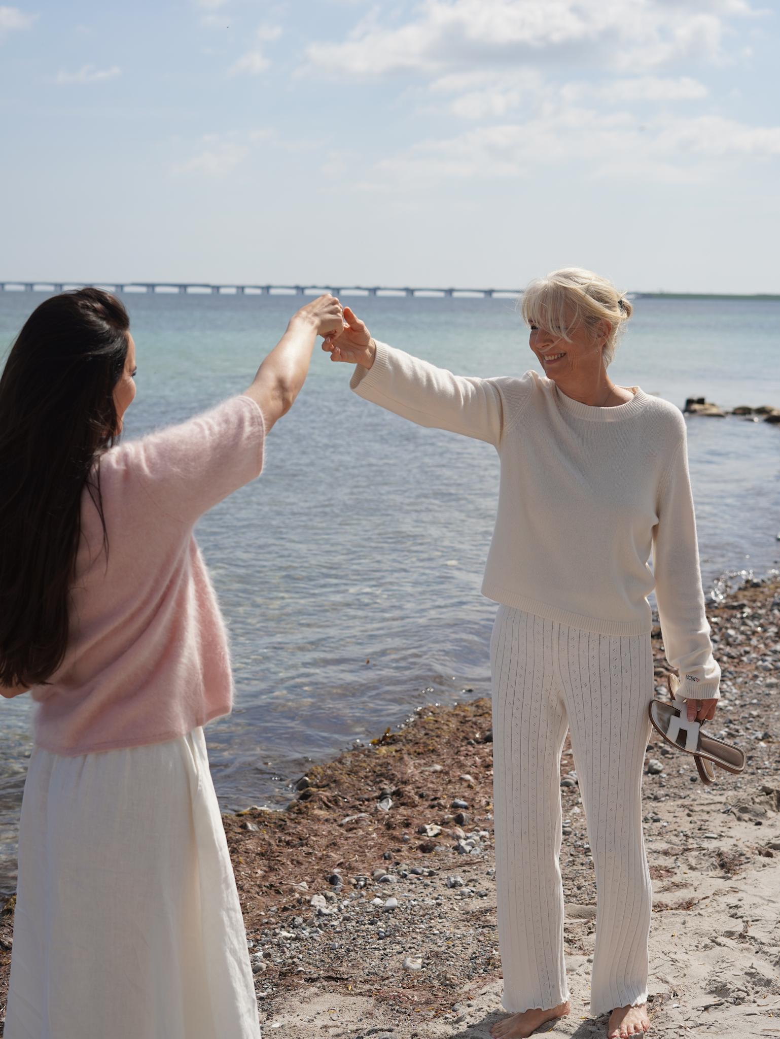 Skjem bort en helt spesiell kvinne med vår eksklusive Mom Blouse – en vakker langermet bluse strikket i 100 % myk og eksklusiv cashmere. Den elegante offwhite-fargen gir et tidløst og sofistikert uttrykk, mens det diskrete MOM-broderiet på ermet tilfører en personlig og hjertevarm detalj.