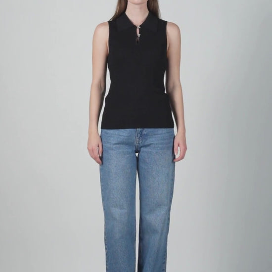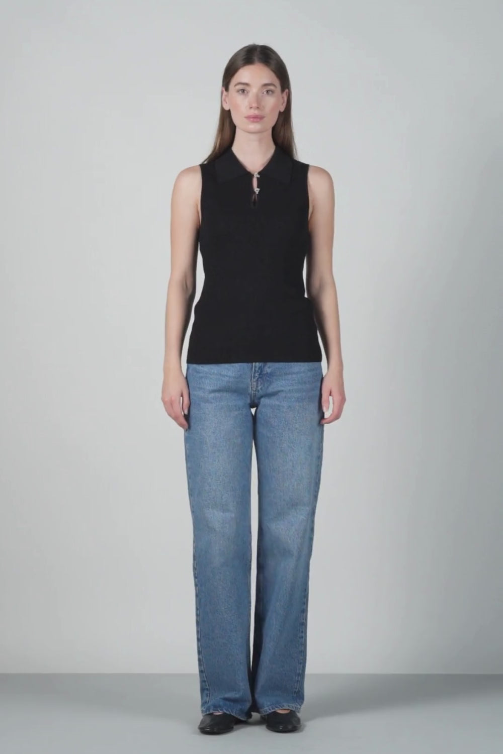 Maddie Top er en stilig, ermeløs topp med en raffinert kraft som tilfører et elegant preg. Den lukkes foran med vakre knapper formet som O'TAY-logoen, pyntet med strass. Maddie Top er laget i en eksklusiv blanding av 75 % merinoull og 25 % silke, og er både myk og behagelig å ha på. Perfekt som et elegant statement-piece.