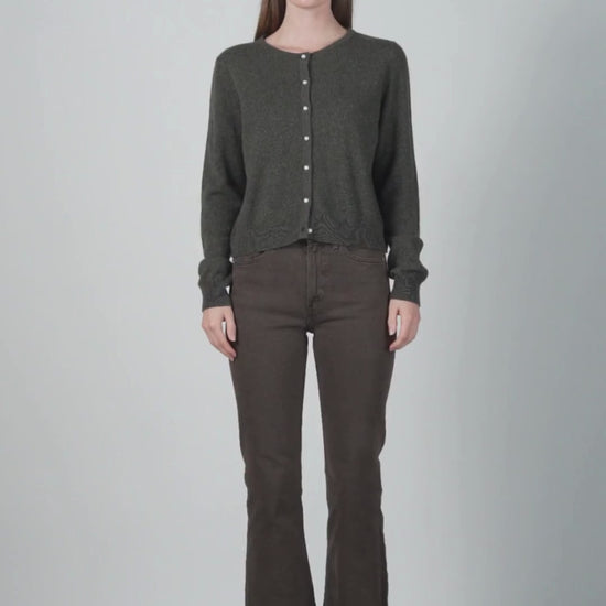 Cardigan i 100 % cashmere med perleknapper. En klassisk og tidløs modell som du vil ha glede av i garderoben i mange år. Normal i størrelsen.
