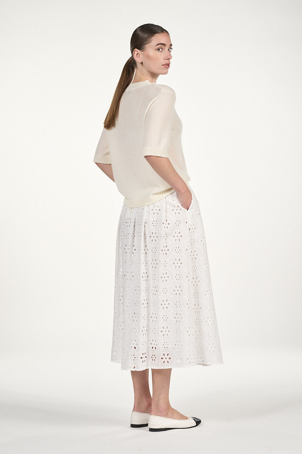 Laura T-skjorten er det ultimate basisplagget i garderoben din. Den passer like godt til jeans for et avslappet antrekk som til et skjørt for en mer elegant look. En tidløs T-skjorte i kashmir som kombinerer klassisk design med førsteklasses kvalitet.