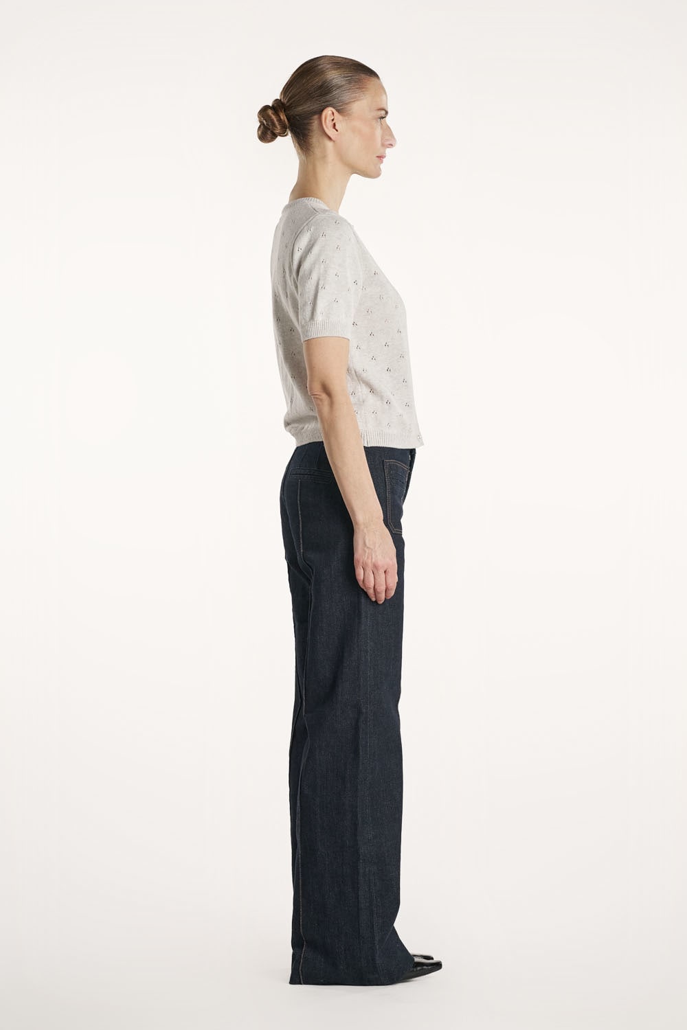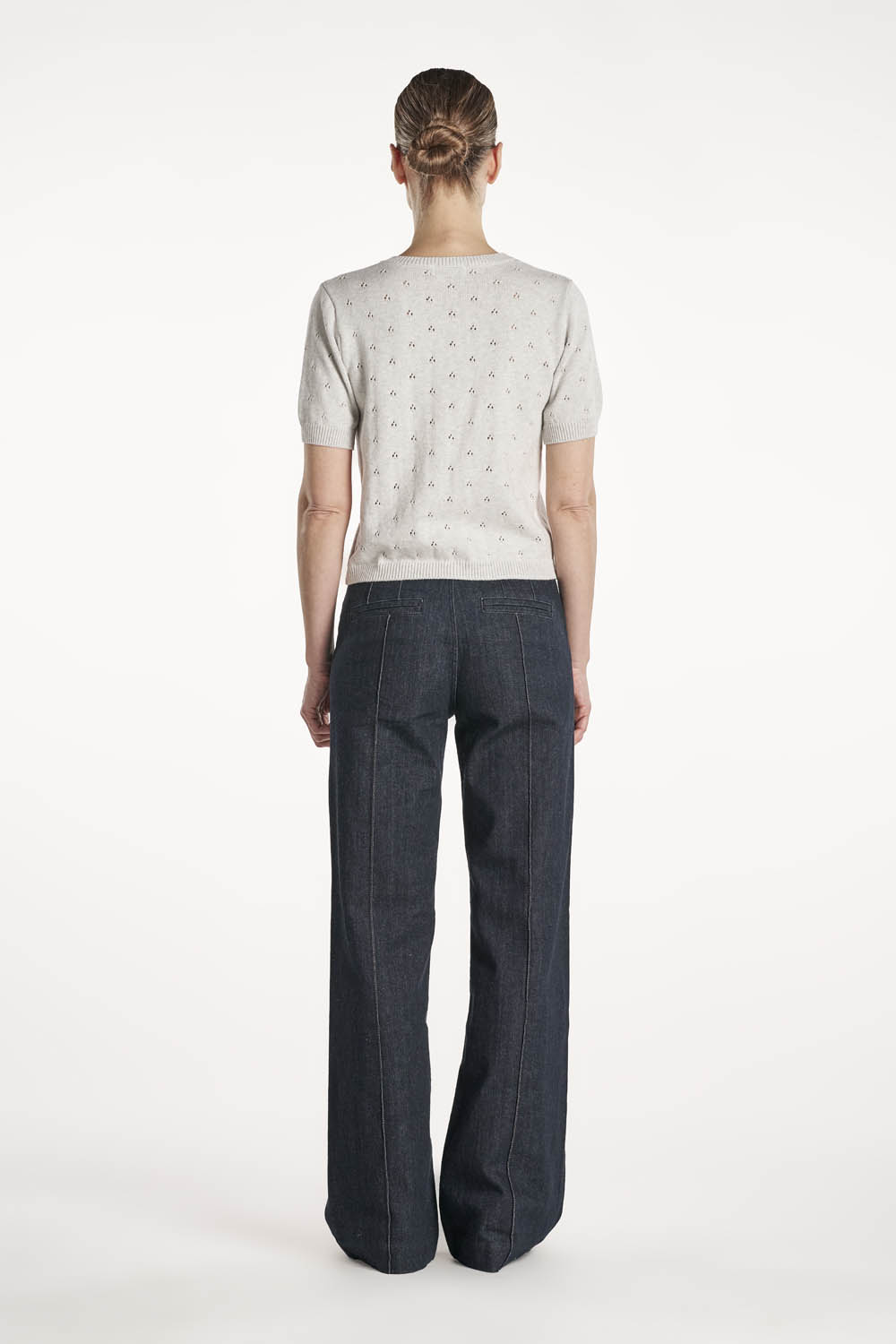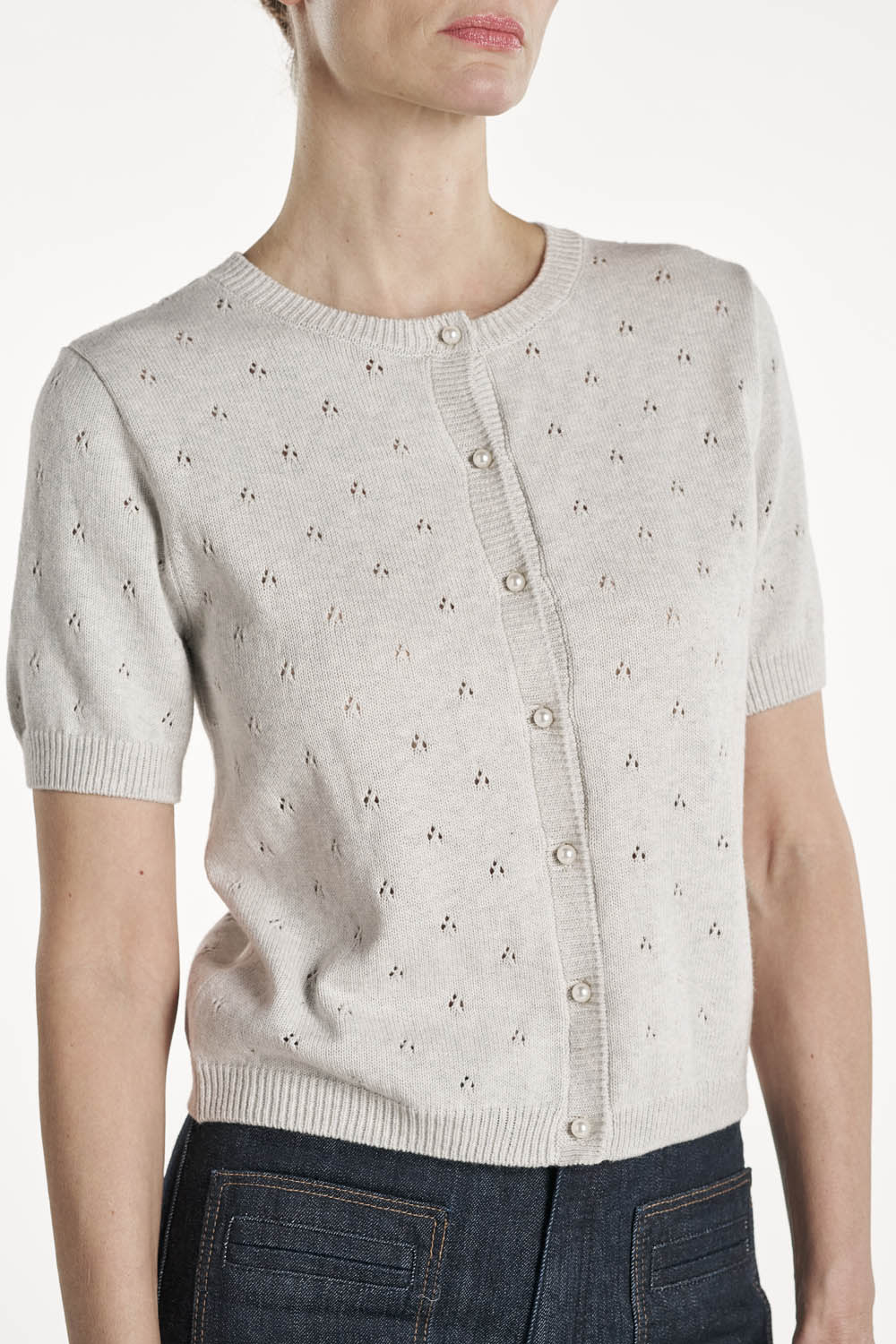 Vår Maxine T-skjorte har en delikat, rund halsutskjæring med subtile stoffdetaljer som gir et eksklusivt og sofistikert uttrykk. Laget av 100 % bomull, kjennes den myk og behagelig mot huden. Den elegante perleknappelukkingen foran gir en vakker og feminin finish, og lar deg justere uttrykket etter din egen stil.